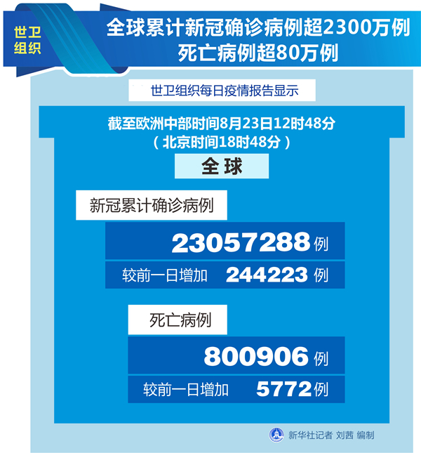世衛(wèi)組織:全球累計(jì)新冠確診病例超2300萬例 死亡病例超80萬例