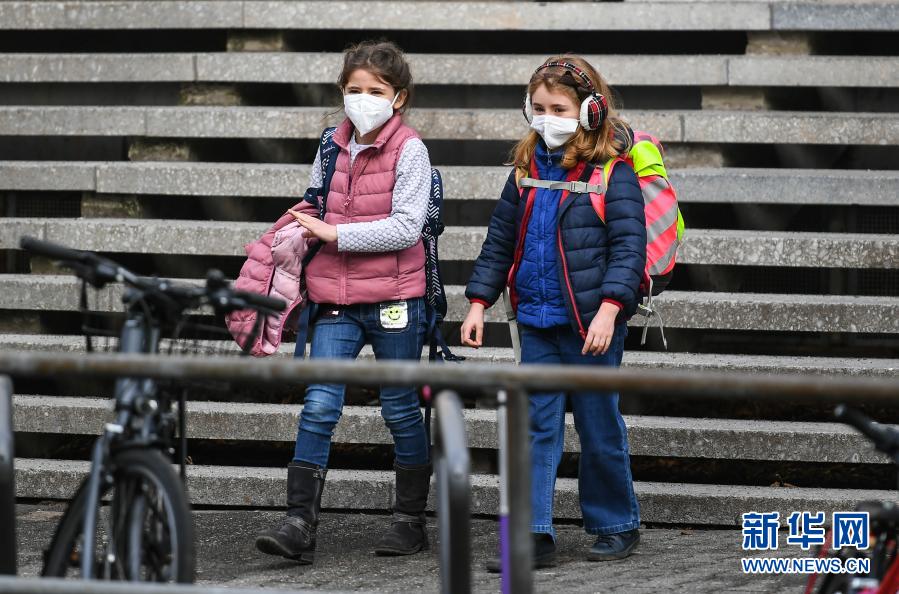 2月22日,在德國法蘭克福,兩名小學生上完課后離開學校。自當日起,隨著新冠防疫措施的逐步寬松,德國部分聯(lián)邦州的學校和日托中心復課。新華社記者 逯陽 攝