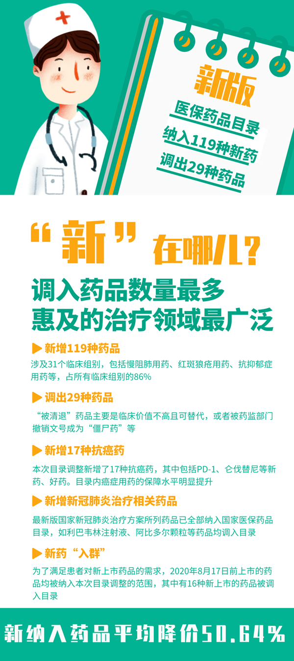 最新版國家醫(yī)保藥品目錄于3月1日正式啟用。經過調整后的醫(yī)保藥品目錄,納入119種藥品,調出29種藥品。 清退“僵尸藥”、新增抗癌藥、覆蓋新冠肺炎治療相關藥品、新納入藥品平均降價50.64%……最新版醫(yī)保藥品目錄再次體現(xiàn)“?;尽钡墓δ芏ㄎ?,推動實現(xiàn)醫(yī)保、企業(yè)、患者“三方共贏”。 新冠肺炎用藥全部納入醫(yī)保 與往年相比,本次醫(yī)保藥品目錄調整看點之一是談判降價調入的藥品數(shù)量最多、惠及的治療領域最廣泛。 新增119種藥品。這些藥品共涉及31個臨床組別,包括慢阻肺用藥、紅斑狼瘡用藥、抗抑郁癥用藥等,占所有臨床組別的86%,患者受益面非常廣泛,其獲得感更加強烈。 新增新冠肺炎治療相關藥品。最新版國家新冠肺炎治療方案所列藥品已全部納入國家醫(yī)保藥品目錄,如利巴韋林注射液、阿比多爾顆粒等藥品均調入目錄,用以應對新冠肺炎疫情。 新增17種抗癌藥。本次目錄調整新增了17種抗癌藥,其中包括PD-1、侖伐替尼等新藥、好藥。目錄內癌癥用藥的保障水平再次提升。 調出29種藥品。這些“被清退”藥品主要是臨床價值不高且可替代,或者被藥監(jiān)部門撤銷文號成為“僵尸藥”等。在論證與評審中,專家們將可替代性作為一項重要指標,被調出的藥品在目錄內均有療效相當或者更好的藥物可供替代。這些藥品的調出,將為更多新藥、好藥納入目錄騰出空間。 新藥“入群”。為了滿足患者對新上市藥品的需求,2020年8月17日前上市的藥品均被納入本次目錄調整的范圍,其中有16種新上市的藥品被調入目錄。 可以看出,這次醫(yī)保藥品目錄調整納入性價比高的藥品、調出臨床價值不高的藥品、全覆蓋治療新冠肺炎相關藥品,其重點依舊放在“?;尽?,提高患者用藥的可及性。 新納入藥品平均降價50.64% 國家醫(yī)保局相關負責人表示,談判成功的119種藥品,平均降價50.64%。從患者負擔情況看,通過談判降價和醫(yī)保報銷,預計2021年可累計為患者減負約280億元。 本次目錄調整首次對目錄內的“老品種”進行降價談判。評審專家經過論證,將價格或費用明顯偏高的14種目錄內藥品納入談判范圍,這些藥品單藥的年銷售金額均超過10億元。經過談判,14種藥品均談判成功并保留在目錄內,平均降價43.46%。 與新準入目錄的藥品相比,一些“老品種”出現(xiàn)了價格“倒掛”現(xiàn)象,對“老品種”進行再談判,有利于提高藥品經濟性與公平性,也能夠切實減輕患者負擔,提升醫(yī)保資金的使用效益。 針對2020年底協(xié)議到期的目錄內抗癌藥品,國家醫(yī)保局對14種獨家藥品按規(guī)則進行續(xù)約或再次談判,平均降幅為14.95%,其中個別一線抗癌藥降幅超過60%。經測算,14種抗癌藥降價,預計2021年可為癌癥患者節(jié)省30余億元。 國家醫(yī)保局醫(yī)藥服務管理司司長熊先軍說,在醫(yī)?;鸢踩傮w可控的前提下,醫(yī)?;鹬С鰶]有明顯增加,參?;颊叩乃幤分С雒黠@節(jié)省,醫(yī)保藥品保障能力和水平得到提升。 多地醫(yī)保藥品目錄調整 參照最新版醫(yī)保藥品目錄,全國多地陸續(xù)發(fā)出與2020新版國家藥品目錄落地執(zhí)行相關的文件,以及地方增補藥品目錄的相關通知。 如北京醫(yī)保藥品目錄已經將新增的119種藥品全部納入。并對門診特殊疾病的藥品報銷品種進行調整完善,將許多新增藥品納入門診特殊疾病報銷,例如將新增藥品 “西尼莫德”和“芬戈莫德”納入“多發(fā)性硬化”門診特殊疾病藥品報銷范圍等。此外,還將“澤布替尼”等19種其他新增藥品納入北京市惡性腫瘤等門診特殊疾病藥品報銷范圍。 除了對談判藥品和高值藥品實行統(tǒng)一分類管理,四川省還將德谷門冬雙胰島素等12個談判藥品納入省城鄉(xiāng)居民糖尿病門診用藥范圍。 隨著新版醫(yī)保藥品目錄的落地,國家醫(yī)保局還將指導定點醫(yī)療機構形成聯(lián)動,及時優(yōu)化升級機構配備、使用的藥品,提升臨床用藥水平,并指導各地通過完善門診保障政策、開通醫(yī)保定點藥店通道、合理調整總額控制等方式,推動新版目錄內藥品落地。 |