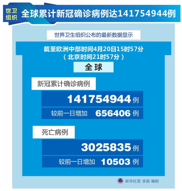 世衛(wèi)組織:全球累計(jì)新冠確診病例達(dá)141754944例