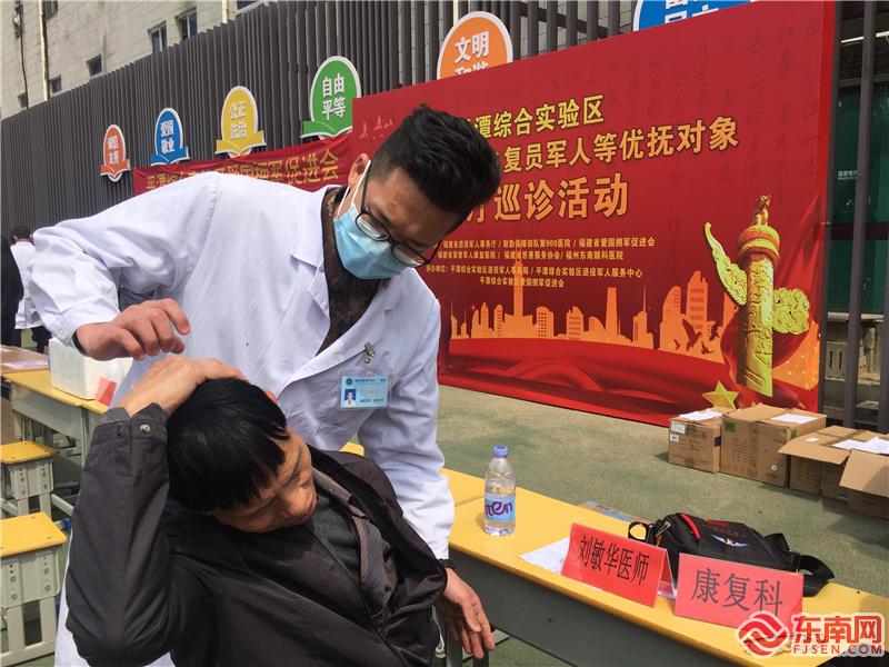 17日,在平潭人民體育場活動現(xiàn)場,聯(lián)勤保障部隊第九○○醫(yī)院康復(fù)科劉敏華醫(yī)生義務(wù)為退役老兵診斷。連日來,省退役軍人事務(wù)廳組織省榮譽軍人康復(fù)醫(yī)院,聯(lián)合聯(lián)勤保障部隊第九○○醫(yī)院、省愛國擁軍促進(jìn)會、省慈善服務(wù)協(xié)會和福州東南眼科醫(yī)院等單位的醫(yī)療專家,從閩北山區(qū)建甌出發(fā),經(jīng)過300公里長途跋涉,首站來到素有“千島之礁”之稱的平潭,為殘疾軍人、在鄉(xiāng)老復(fù)員軍人和烈屬等優(yōu)撫對象提供免費巡診。 省榮譽軍人康復(fù)醫(yī)院院長練畢全說:“11年來,我們每年都不間斷開展優(yōu)撫對象醫(yī)療巡診活動,跋涉在山水間,風(fēng)雨兼程,幾乎走遍全省各縣,已為8000多名老復(fù)員軍人和其他優(yōu)撫對象提供了免費診療服務(wù)。”福建日報記者 何祖謀 攝影報道 |