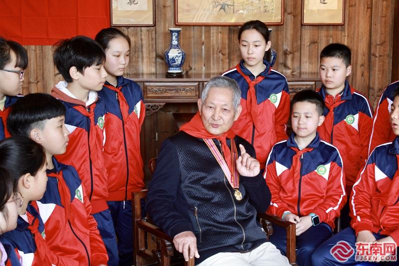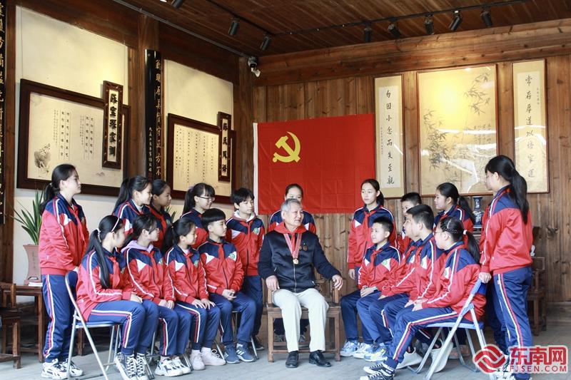 學(xué)生們圍著在志愿軍老兵身邊 專心的聽著他講述親歷“抗美援朝”的故事 林雯婷 供圖 東南網(wǎng)訊(本網(wǎng)記者 林張清 通訊員 林雯婷)3月25日上午,福州市倉山區(qū)螺洲鎮(zhèn)在陳氏五樓舉辦以“宣講紅色故事,傳承紅色基因”為主題的黨史教育宣講活動,邀請參加過抗美援朝的87歲老兵林君才為螺洲中心小學(xué)的學(xué)生和螺洲鎮(zhèn)干部職工們講述志愿軍作戰(zhàn)的故事。 在陳氏家風(fēng)家訓(xùn)館的廳堂中,孩子們圍著林爺爺坐在一起,林爺爺以“參加抗美援朝的回憶”為主題,為大家講了一堂生動的黨課,解放軍戰(zhàn)士不畏困難、不怕犧牲、勇敢作戰(zhàn)的英勇事跡。七十多年前戰(zhàn)場情景歷歷在目,無數(shù)戰(zhàn)友倒在了血泊中換來了戰(zhàn)斗的勝利”。林爺爺強忍內(nèi)心的激動感慨道,今天的幸福生活來之不易,在中國共產(chǎn)黨的堅強領(lǐng)導(dǎo)下,國家日益強盛,流血犧牲的戰(zhàn)友用生命換來的勝利是值得的。如果再回到過去,他還是會做出同樣的選擇,從軍入伍上戰(zhàn)場!