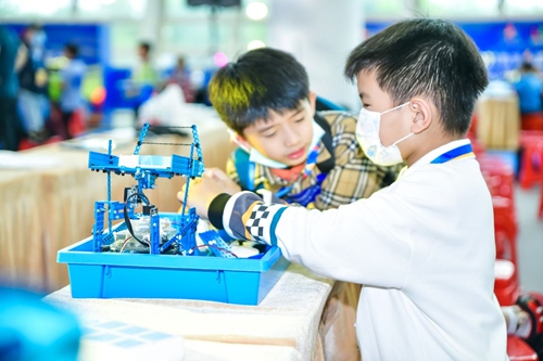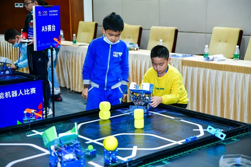 人工智能機(jī)器人比賽 以《智能家庭小助手》為主題的創(chuàng)意編程搭建比賽共有20支隊(duì)伍進(jìn)入決賽,參賽戰(zhàn)隊(duì)將投稿的創(chuàng)意作品進(jìn)行現(xiàn)場(chǎng)展示。選手們發(fā)揮自身的創(chuàng)造力和想象力搭建作品,并通過(guò)周邊物料對(duì)自己的作品展區(qū)進(jìn)行布置,利用不同的裝飾風(fēng)格來(lái)展示自己的戰(zhàn)隊(duì)文化?,F(xiàn)場(chǎng)展現(xiàn)了AI讀書(shū)數(shù)娃、智能搭配衣柜、家庭智能控制中心、分體式樓梯清洗系統(tǒng)等各種創(chuàng)意作品。