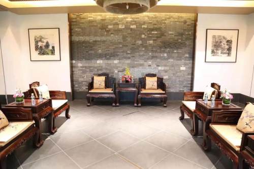 博鰲亞洲論壇主題公園田園外交會客廳由知名古典家具藝術(shù)家陳玉樹擔(dān)綱主創(chuàng)。會客廳創(chuàng)作歷時多個月,歷經(jīng)前期調(diào)研、風(fēng)格研討、征集素材、創(chuàng)作論證等多個環(huán)節(jié)。它由陳玉樹作品《松風(fēng)》、《龍瑞》、《大美》、《百子》等組成。
