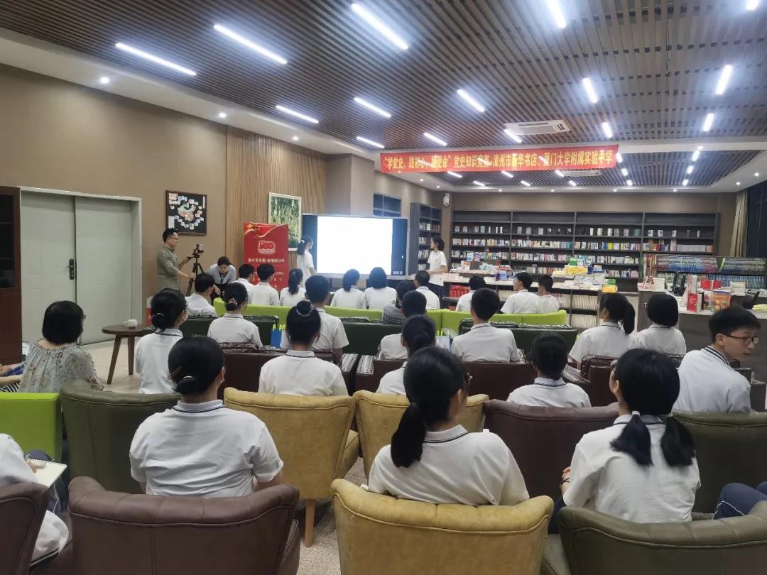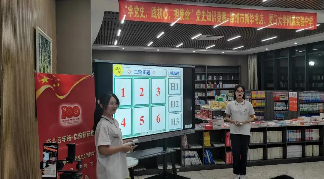 5月14號(hào)晚,福建新華發(fā)行集團(tuán)漳州分公司與廈門(mén)大學(xué)附屬實(shí)驗(yàn)中學(xué)在校園內(nèi)的新華書(shū)店開(kāi)展了一場(chǎng)別開(kāi)生面的黨史知識(shí)競(jìng)賽,以此回顧黨的崢嶸歲月,謳歌黨的光輝業(yè)績(jī),繼承和發(fā)揚(yáng)黨的優(yōu)良傳統(tǒng)與作風(fēng),獻(xiàn)禮建黨百年。