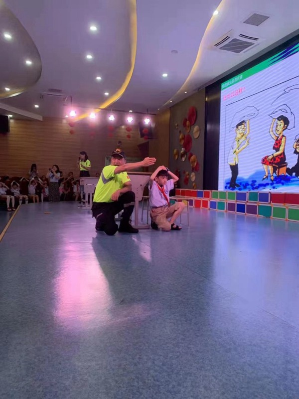 活動(dòng)在表演中拉開帷幕。學(xué)校供圖 本次活動(dòng)在一段精彩的開場(chǎng)表演中拉開帷幕。在場(chǎng)師生一起觀看了一段防災(zāi)減災(zāi)的宣傳片。麒麟防災(zāi)減災(zāi)救援服務(wù)中心的叔叔阿姨們給大家?guī)?lái)防災(zāi)減災(zāi)情景表演,他們認(rèn)真講解、演示遇到地震時(shí)應(yīng)如何躲避風(fēng)險(xiǎn),并在現(xiàn)場(chǎng)指引孩子們遇到危險(xiǎn)時(shí)如何逃生、如何保護(hù)自己。