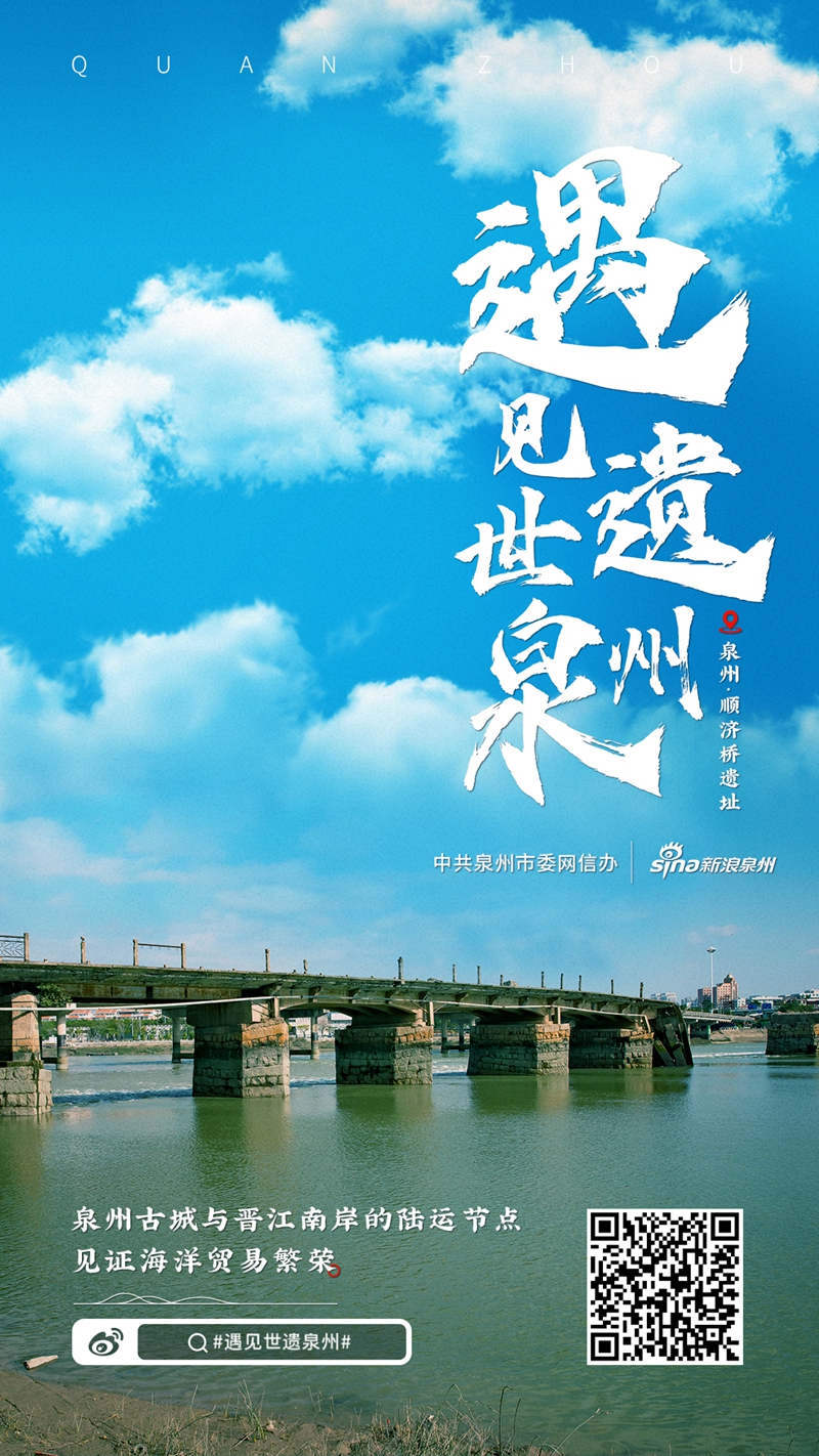 順濟(jì)橋遺址位于泉州古城南門德濟(jì)門外,橫跨晉江兩岸,以近順濟(jì)宮(天后宮)而得名,是泉州古城與晉江南岸的陸運(yùn)節(jié)點(diǎn)。它由南宋泉州郡守鄒應(yīng)龍主持建造于1211年,沿用至20世紀(jì),現(xiàn)以遺址狀態(tài)保存,現(xiàn)存長約400米。順濟(jì)橋是伴隨海洋貿(mào)易發(fā)展而建設(shè)的出入古城商業(yè)區(qū)的主要通道,加強(qiáng)了泉州城與南部平原丘陵和碼頭區(qū)的陸運(yùn)聯(lián)系,完善了泉州水陸轉(zhuǎn)運(yùn)系統(tǒng)。它與德濟(jì)門遺址、天后宮共同體現(xiàn)了海洋貿(mào)易推動下古城南部商業(yè)性城區(qū)的發(fā)展,見證了商業(yè)拓展對交通系統(tǒng)的促進(jìn)。