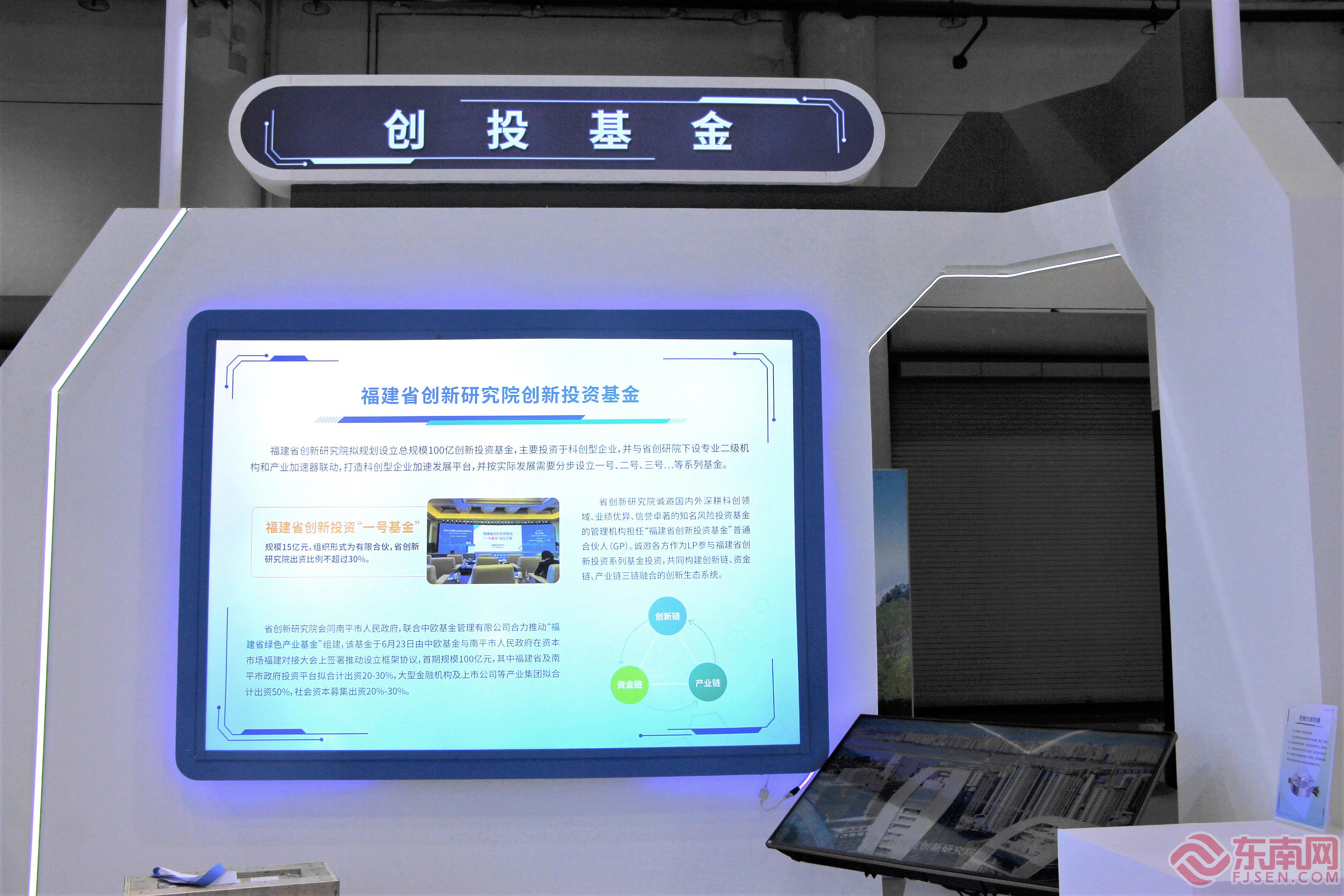 省創(chuàng)新研究院展區(qū) 東南網記者盧金福 攝 創(chuàng)投基金板塊展示:展示福建省創(chuàng)新投資基金的投資領域、投資理念、投資項目等概況。省創(chuàng)新研究院擬規(guī)劃設立總規(guī)模100億創(chuàng)新投資基金。 福建省創(chuàng)新研究院是省政府直屬事業(yè)單位,機構規(guī)格相當正廳級,于今年1月29日正式掛牌,作為我省創(chuàng)新體系的重要組成部分,主要圍繞我省產業(yè)發(fā)展戰(zhàn)略、產業(yè)經濟、行業(yè)規(guī)劃、項目策劃、技術轉化以及相關政策法規(guī)等進行研究并提供服務、指導和咨詢,聚焦“1到10”,輻射“10到N”全鏈條,打造“科技成果轉化平臺+創(chuàng)新人才引進平臺+創(chuàng)新創(chuàng)業(yè)投資平臺”三合一新型創(chuàng)新主體。 |