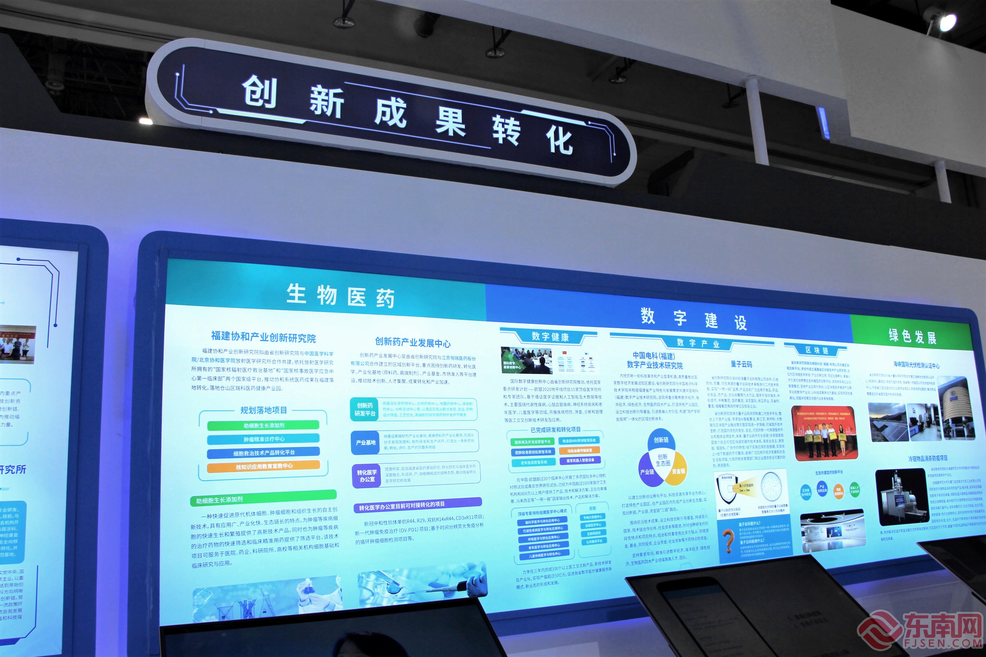 省創(chuàng)新研究院展區(qū) 東南網記者盧金福 攝 創(chuàng)新成果轉化平臺板塊:展示了生物醫(yī)藥、數字建設、綠化發(fā)展等領域的創(chuàng)新成果轉化。