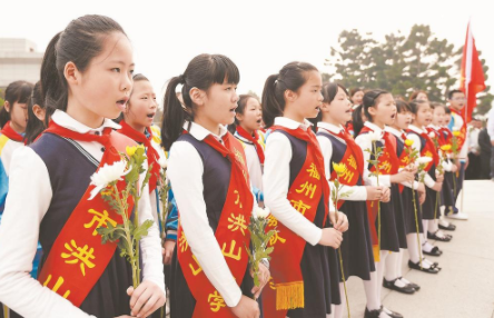 福州市中小學(xué)生在文林山革命烈士陵園祭奠緬懷英烈。 (資料圖片)
