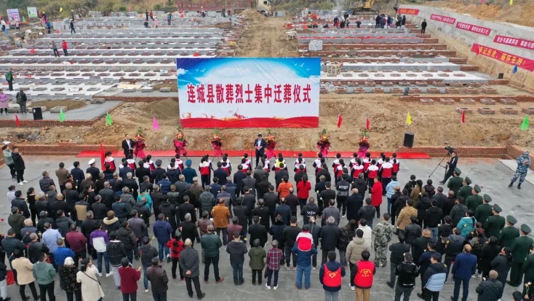 1月20日,龍巖市連城縣零散烈士墓集中遷葬儀式在縣烈士集中安葬區(qū)(廟前鎮(zhèn)旗山)舉行。龍巖市退役軍人事務(wù)局、連城縣四套班子有關(guān)領(lǐng)導(dǎo),縣直有關(guān)單位和部分鄉(xiāng)(鎮(zhèn))領(lǐng)導(dǎo),人武干部、烈士家屬代表、少先隊(duì)員代表等參加儀式。圖片