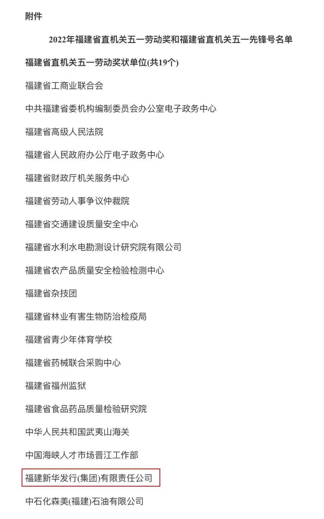 熱烈祝賀福建新華發(fā)行(集團)有限責任公司榮獲省直機關五一勞動獎狀