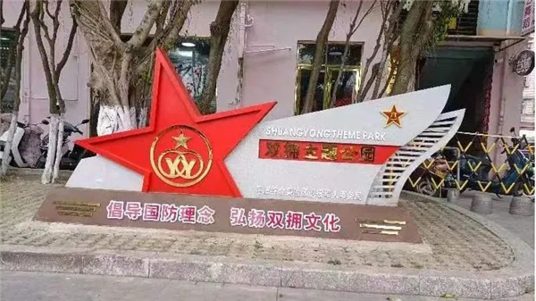 近年來,省退役軍人廳、省雙擁辦全面加強(qiáng)各地切實抓好雙擁陣地建設(shè),通過完善雙擁特色項目,打造國防教育精品工程,將雙擁元素與自然景觀和諧融為一體,使雙擁基礎(chǔ)設(shè)施服務(wù)功能持續(xù)提升,讓廣大市民在休閑娛樂中潛移默化地接受雙擁文化和國防知識熏陶,增強(qiáng)全民國防觀念和雙擁意識,激發(fā)全民愛國擁軍熱情,形成全社會擁軍的良好氛圍。 平潭綜合實驗區(qū)雙擁主題公園 為營造雙擁創(chuàng)建的濃厚氛圍,鞏固軍民共建魚水情誼,實驗區(qū)精心打造的首個雙擁主題公園于日前建成。該公園位于城區(qū)中心地段,占地面積63179㎡,依托現(xiàn)有的翠園公園,在涼亭、草地等園林景觀基礎(chǔ)上因地制宜設(shè)計雙擁文化元素。