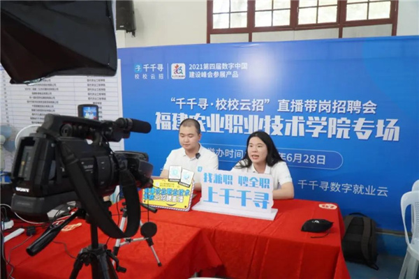 招聘會期間開啟“直播帶崗”線上線下雙聯(lián)動,為滿足用人單位和畢業(yè)生個性化需求,福建農(nóng)業(yè)職業(yè)技術(shù)學院聯(lián)合千千尋數(shù)字就業(yè)云開展云招聘直播,為用人單位和畢業(yè)生搭建有效的對接平臺,直播期間學生實時問答提問,企業(yè)在線實時回復。