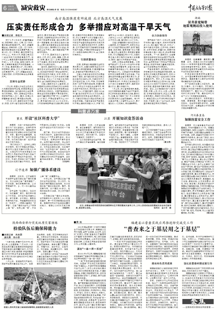 2022年是全國第一次自然災(zāi)害綜合風(fēng)險(xiǎn)普查的收官之年,福建省以應(yīng)用為準(zhǔn)繩,堅(jiān)持“邊普查、邊應(yīng)用、邊見效”的原則,明確“普查來之于基層用之于基層”的思想導(dǎo)向,精心謀劃普查成果應(yīng)用場景建設(shè),以實(shí)際成效檢驗(yàn)普查成果,以實(shí)踐應(yīng)用推進(jìn)普查后續(xù)工作,以用促建、以建保用。 謀劃“一單一庫一系統(tǒng)” 自2021年8月以來,福建省普查辦組織專家編制了普查應(yīng)用系統(tǒng)建設(shè)方案,立足應(yīng)用科學(xué)謀劃“一單一庫一系統(tǒng)”。 “一單”即制定省級普查數(shù)據(jù)共享清單。在國家“評估與區(qū)劃數(shù)據(jù)需求清單”的基礎(chǔ)上,抓緊研究制定福建省內(nèi)各行業(yè)部門、涉及公共設(shè)施的重點(diǎn)企業(yè)間的長期數(shù)據(jù)共享清單,打通數(shù)據(jù)壁壘,并建立持續(xù)更新機(jī)制,實(shí)現(xiàn)后普查數(shù)據(jù)的多部門、多層級、跨平臺(tái)數(shù)據(jù)交換與共享。 “一庫”即建設(shè)省級普查基礎(chǔ)數(shù)據(jù)庫?;趪一A(chǔ)數(shù)據(jù)庫進(jìn)行定制化開發(fā),除此次普查成果外,還根據(jù)福建地方特點(diǎn)和需求補(bǔ)充相關(guān)擴(kuò)展非普查數(shù)據(jù),實(shí)現(xiàn)數(shù)據(jù)接入來源多樣化、特色化、標(biāo)準(zhǔn)化、動(dòng)態(tài)化、精細(xì)化、共享化,加強(qiáng)和開通數(shù)據(jù)共享安全渠道,不斷健全數(shù)據(jù)庫資源體系,形成全省“統(tǒng)一匯聚、按需共享、成果適用”的自然災(zāi)害數(shù)據(jù)管理與服務(wù)體系,鼓勵(lì)有條件的市、縣及行業(yè)部門建立專屬災(zāi)害風(fēng)險(xiǎn)數(shù)據(jù)庫,形成分類型分區(qū)域的全省災(zāi)害風(fēng)險(xiǎn)基礎(chǔ)數(shù)據(jù)庫系統(tǒng),實(shí)現(xiàn)多部門、多層級、跨平臺(tái)數(shù)據(jù)交換與共享。 “一系統(tǒng)”即開發(fā)省級普查應(yīng)用系統(tǒng)。通過省級頂層設(shè)計(jì)建設(shè)四大平臺(tái)。數(shù)據(jù)動(dòng)態(tài)更新平臺(tái),依托省級普查基礎(chǔ)數(shù)據(jù)庫,實(shí)現(xiàn)省內(nèi)各行業(yè)部門、地區(qū)、院校和重點(diǎn)企業(yè)、機(jī)構(gòu)間長期數(shù)據(jù)共享和持續(xù)更新;普查成果可視化展示平臺(tái),匯總綜合風(fēng)險(xiǎn)普查評估區(qū)劃成果清單,集成全省調(diào)查數(shù)據(jù)和自然災(zāi)害風(fēng)險(xiǎn)地圖,以縣級和部門為單位,將普查成果進(jìn)行圖形、符號轉(zhuǎn)換,實(shí)現(xiàn)動(dòng)態(tài)的可視化表達(dá),實(shí)現(xiàn)調(diào)查成果的屬性查閱、統(tǒng)計(jì)和分析;臨災(zāi)快速評估應(yīng)用平臺(tái),接入全省應(yīng)急指揮系統(tǒng)“一張網(wǎng)”,建立全省統(tǒng)一普查底圖,支撐臨災(zāi)快速評估掛圖式作業(yè),結(jié)合在福建省第十七屆運(yùn)動(dòng)會(huì)舉辦地南平市建陽區(qū)開展評估區(qū)劃成果應(yīng)用,建設(shè)優(yōu)于5厘米分辨率的傾斜攝影影像、激光點(diǎn)云等數(shù)據(jù),完成基礎(chǔ)地理實(shí)體數(shù)據(jù)制作,支持臨災(zāi)數(shù)據(jù)與普查基礎(chǔ)數(shù)據(jù)的建模運(yùn)算,實(shí)現(xiàn)重點(diǎn)區(qū)域、重點(diǎn)人群、重點(diǎn)企事業(yè)單位的快速災(zāi)損評估,規(guī)劃人員疏散路線、調(diào)配救災(zāi)應(yīng)急物質(zhì),優(yōu)先建立影響福建的臺(tái)風(fēng)、暴雨和洪澇評估模型,為災(zāi)害風(fēng)險(xiǎn)的防與治提供信息化、智能化的科學(xué)支撐;適用性智慧減災(zāi)平臺(tái),強(qiáng)化數(shù)據(jù)賦能,建立統(tǒng)一的防災(zāi)減災(zāi)科學(xué)系統(tǒng)模型,集成具有預(yù)警、預(yù)報(bào)、預(yù)案、預(yù)演多功能的智慧減災(zāi)平臺(tái),向氣象、水利、海洋、地震等部門單位提供在線應(yīng)急空間信息云共享服務(wù)。省級普查應(yīng)用系統(tǒng)開發(fā)后將免費(fèi)供市縣使用,并持續(xù)更新迭代,后期可將普查成果應(yīng)用于安全城市等建設(shè)與管理工作,推動(dòng)普查成果在智慧社區(qū)、智慧鄉(xiāng)村信息系統(tǒng)和移動(dòng)端的應(yīng)用。 推出特色應(yīng)用成果 福建省普查辦以省級普查應(yīng)用系統(tǒng)開發(fā)為核心,采用“1+N”架構(gòu),提供省級基礎(chǔ)數(shù)據(jù)庫和應(yīng)用系統(tǒng)接口,鼓勵(lì)各地區(qū)各行業(yè)“以需求為導(dǎo)向、以場景為內(nèi)核”進(jìn)行二次開發(fā)。 目前,該省部分行業(yè)和地區(qū)因地制宜,推出了一批具有地域特點(diǎn)或行業(yè)特色的應(yīng)用成果。例如,該省氣象局將風(fēng)險(xiǎn)普查成果應(yīng)用到臺(tái)風(fēng)災(zāi)害防御當(dāng)中,研制完成2109號臺(tái)風(fēng)“盧碧”的致災(zāi)因子危險(xiǎn)性預(yù)估圖和綜合風(fēng)險(xiǎn)預(yù)估圖等產(chǎn)品,為各級政府防御臺(tái)風(fēng)提供精細(xì)化技術(shù)支撐;省海洋與漁業(yè)局根據(jù)海洋產(chǎn)業(yè)分布帶,開展涉海人員活動(dòng)、涉海承災(zāi)體、海洋產(chǎn)業(yè)實(shí)時(shí)風(fēng)險(xiǎn)等級評估咨詢等服務(wù);省水利廳統(tǒng)籌省市縣三級部門組建水利規(guī)劃、空間地理、軟件開發(fā)等跨學(xué)科工作組,協(xié)同辦公,開展聯(lián)合攻關(guān);福州市