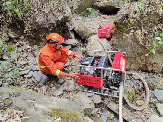 在溪流邊架設(shè)水泵