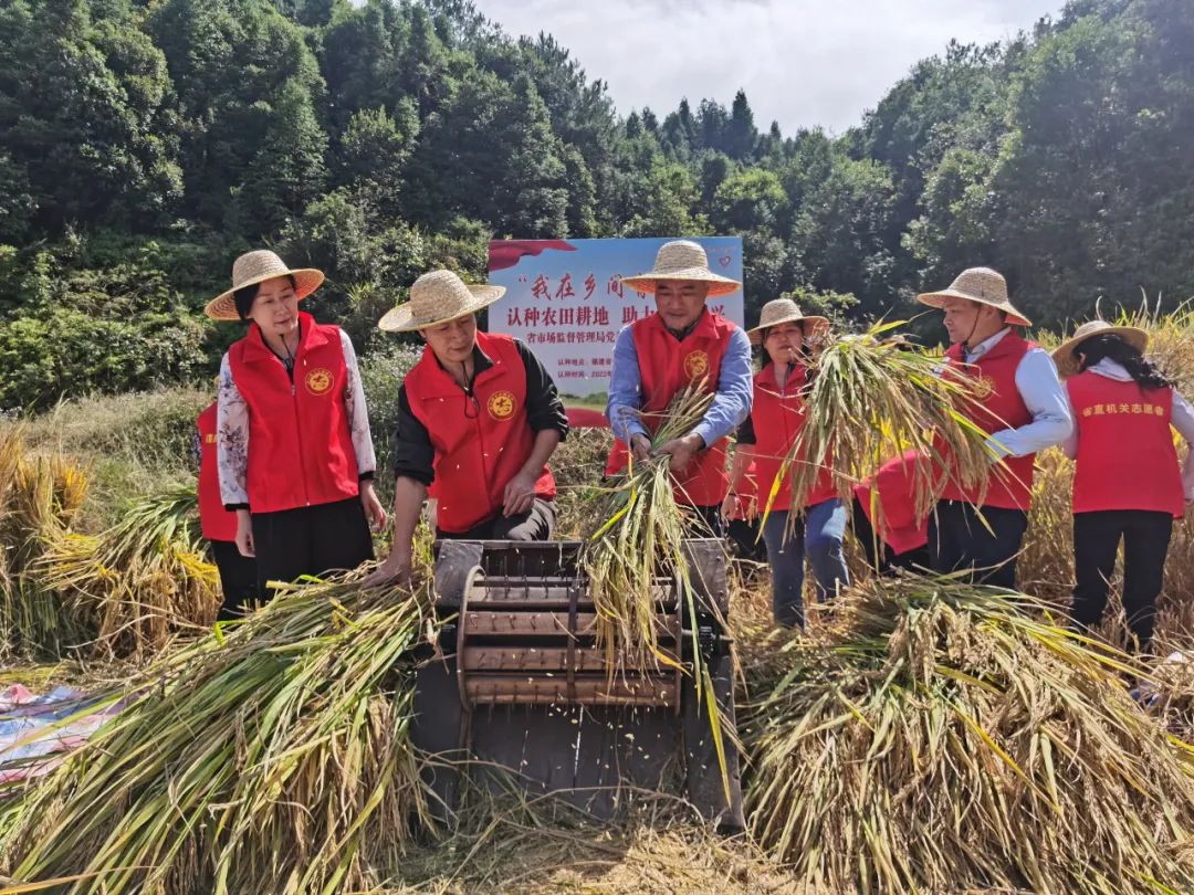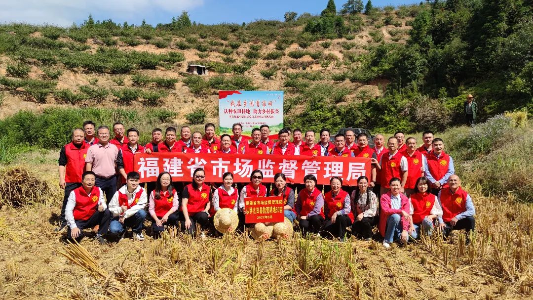 沃野生金,稻菽飄香 為積極響應(yīng)福建省委省直機(jī)關(guān)工委倡議,10月10日,福建省市場(chǎng)監(jiān)管局黨組書記、局長(zhǎng)黃培惠帶領(lǐng)30多名黨員干部前往古田縣吉巷鄉(xiāng)薛后村,開展“我在鄉(xiāng)間有畝田”體驗(yàn)農(nóng)耕金秋割稻活動(dòng),在活動(dòng)中錘煉純潔黨性,守護(hù)糧食安全。