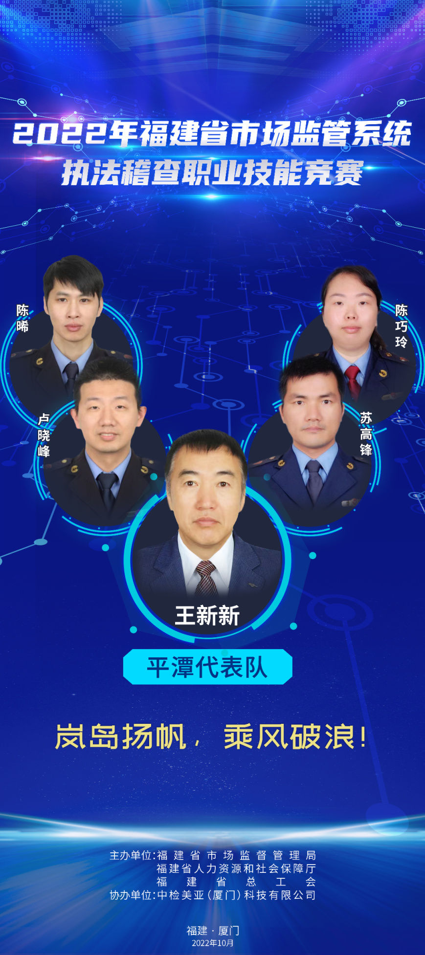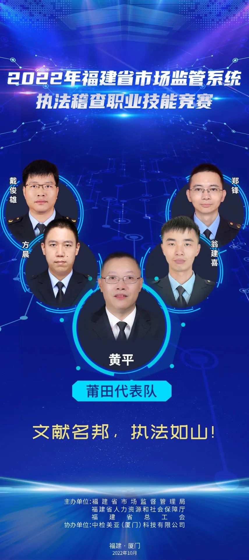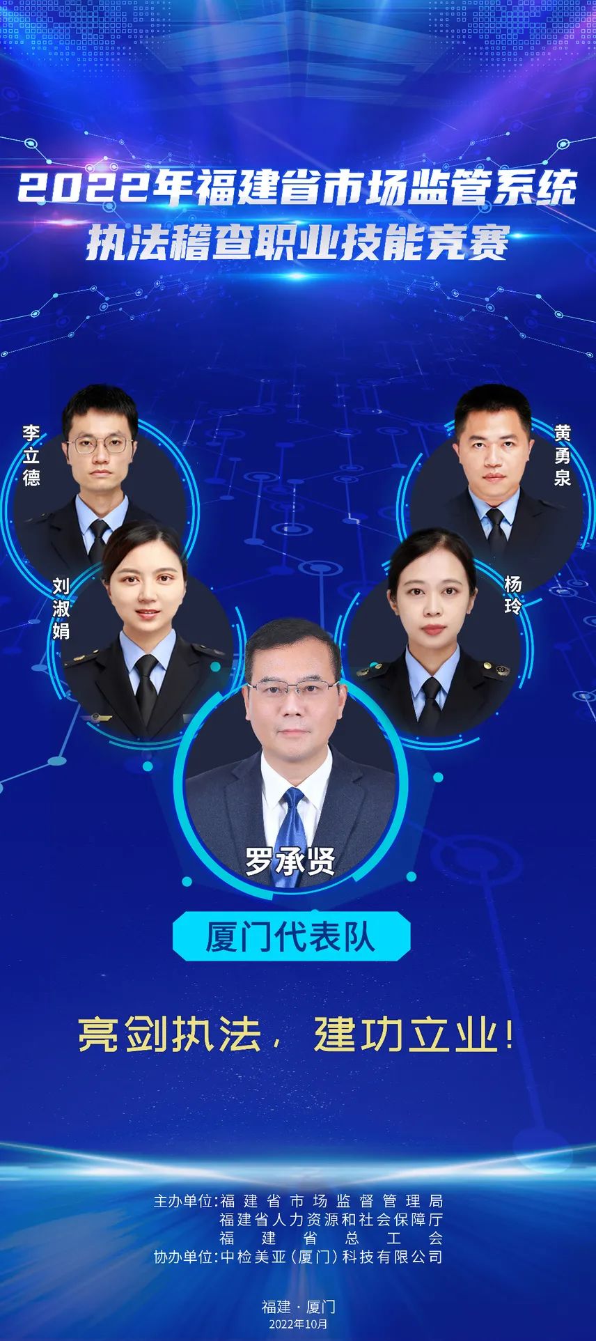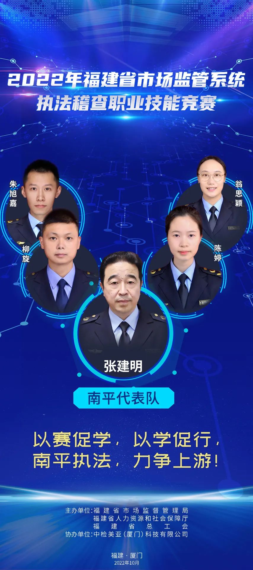 為推進(jìn)維護(hù)統(tǒng)一市場綜合執(zhí)法能力建設(shè),選出一批辦案能手,進(jìn)一步在市場監(jiān)管系統(tǒng)強(qiáng)化法治思維,規(guī)范執(zhí)法行為,提升執(zhí)法水平,鍛造“敢執(zhí)法、能執(zhí)法、善執(zhí)法、會執(zhí)法”的專業(yè)化市場監(jiān)管鐵軍,2022年福建省市場監(jiān)管系統(tǒng)執(zhí)法稽查職業(yè)技能競賽活動正式舉辦,全省10支代表隊40名參賽選手,厲兵秣馬展開激烈角逐。他們分別是誰?
