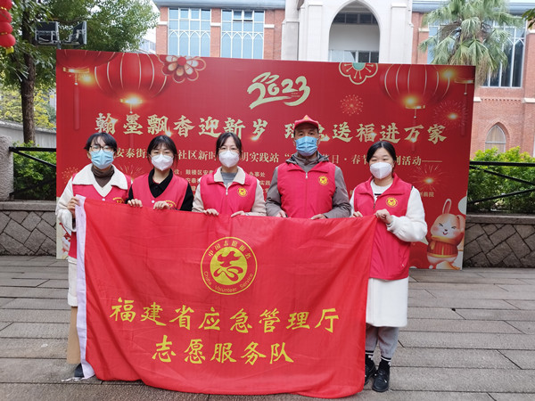為深入學習貫徹黨的二十大精神,廣泛傳播社會主義核心價值觀,大力弘揚中華優(yōu)秀傳統(tǒng)文化,1月11日,省應急管理廳辦公室、減災處和省減災中心聯合于山社區(qū)在鰲峰文化廣場開展“翰墨飄香迎新歲瑞兔送福進萬家”為主題的新時代文明實踐站“我們的節(jié)日·春節(jié)”系列活動,活動設置了寫“福”字送春聯、義診保健、生態(tài)環(huán)保、移風易俗、廉潔過節(jié)、反金融詐騙宣傳等內容。 志愿服務暖新春,文明之風頌華年。省應急管理廳組織進行了安全生產、防災減災和應急避險志愿宣傳,推廣福建應急形象和文化,通過現場咨詢講解、宣傳圖冊發(fā)放、特色物件贈送等方式,增強居民的公共安全意識,提升群眾的安全技能素養(yǎng),共筑安全屏障,共度一個平安、祥和、歡樂的傳統(tǒng)佳節(jié)。