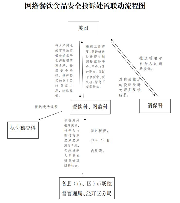 二、突出重點(diǎn),暢通維權(quán)通道 龍巖市市場(chǎng)監(jiān)管局落實(shí)網(wǎng)絡(luò)餐飲食品安全投訴處置聯(lián)動(dòng)機(jī)制,依據(jù)網(wǎng)絡(luò)餐飲食品安全投訴處置聯(lián)動(dòng)流程圖,公開(kāi)監(jiān)督舉報(bào)方式,暢通食品安全消費(fèi)維權(quán)綠色通道,依照職能職責(zé)受理外賣(mài)消費(fèi)相關(guān)的咨詢、投訴、舉報(bào),落實(shí)執(zhí)行消費(fèi)糾紛訴轉(zhuǎn)案制度,分流轉(zhuǎn)辦有效訴求并抓好跟蹤督辦,及時(shí)妥善化解矛盾,確保群眾訴求得到及時(shí)有效處理回應(yīng)和解決。今年以來(lái),對(duì)于群眾咨詢、投訴、舉報(bào)均已100%按時(shí)初查、按時(shí)辦結(jié)。