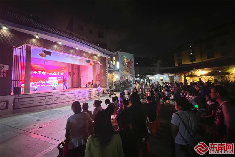 “百年學(xué)村 大社有戲”宣傳展演活動(dòng)吸引不少市民游客圍觀(guān)欣賞(東南網(wǎng)記者 李霖 攝) |