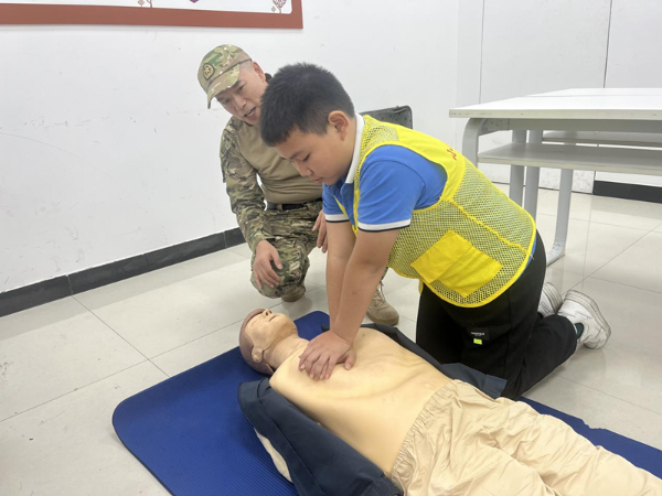 三、自護技能學習 為了讓營員們充分認識了挽救生命最關鍵的“黃金4分鐘”,掌握正確的自救互救方法,來自福建省星光救援隊的王清琪老師利用人體模具開展心肺復蘇的技能教學,教給營員們判斷是否需要實施心肺復蘇救援的“三要素”,以及心肺復蘇的操作要領,并讓營員們輪流體驗心肺復蘇的操作流程。