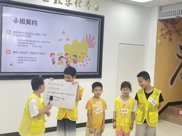 一、小小安全員初相會 通過豐富有趣的“破冰游戲”營員們漸漸熟悉起來,他們分為四組進行“找呀找呀找朋友”的小游戲,每一位營員在紙上描出自己手掌的形狀,在每個手指上寫下自己的信息,在現(xiàn)場尋找相同特點的朋友。