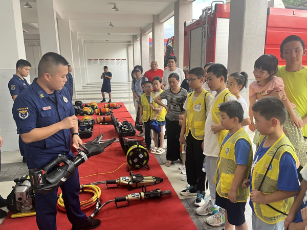 五、我和“消防”零距離 在消防支隊特勤大隊第二支隊,消防戰(zhàn)士向營員們介紹了不同功能類型的消防車,講解了各類探測儀、破拆器、空氣呼吸器的功能,教授了營員們正確使用滅火器的方法,更邀請營員們試穿他們執(zhí)行任務時所穿的“戰(zhàn)斗服”,體驗一下消防員們在沖鋒陷陣時“負重前行”的感覺。