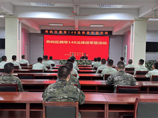活動邀請福建鵬翼律師事務(wù)所主任黃慶焰律師向部隊官兵解讀《中華人民共和國軍人地位和權(quán)益保障法》《中華人民共和國英雄烈士保護(hù)法》等相關(guān)政策,并為官兵送上法律書籍,幫助官兵釋疑解惑。 城廂區(qū)退役軍人事務(wù)局有關(guān)負(fù)責(zé)人表示,此次聯(lián)合相關(guān)單位到部隊開展“送法進(jìn)軍營”活動,目的是為了讓部隊官兵學(xué)法懂法,善于依法辦事,幫助官兵解決家庭涉法疑難問題,讓官兵安心部隊強(qiáng)軍練戰(zhàn)。 秀嶼區(qū) 8月14日,莆田市秀嶼區(qū)司法局聯(lián)合區(qū)退役軍人事務(wù)局前往武警某部開展“擁軍148法律進(jìn)軍營”活動。
