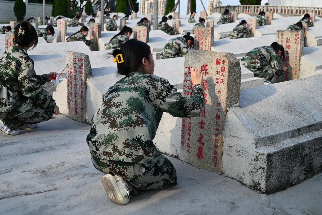 烈士紀念日前夕,漳州大學生志愿服務隊為先烈墓碑“描紅”