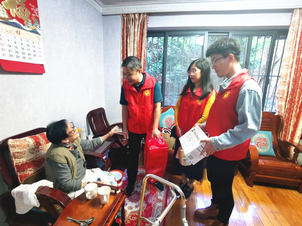 現(xiàn)場活動后,廳志愿者入戶看望慰問80歲以上老人代表,送去慰問品以及濃濃祝福,噓寒問暖,和老人們拉家常,了解他們的生活狀況和需求,從物質(zhì)上關(guān)心、精神上關(guān)愛,讓老人們度過一個溫馨的重陽節(jié)。一位老人握著志愿者的手感激地連聲道謝。