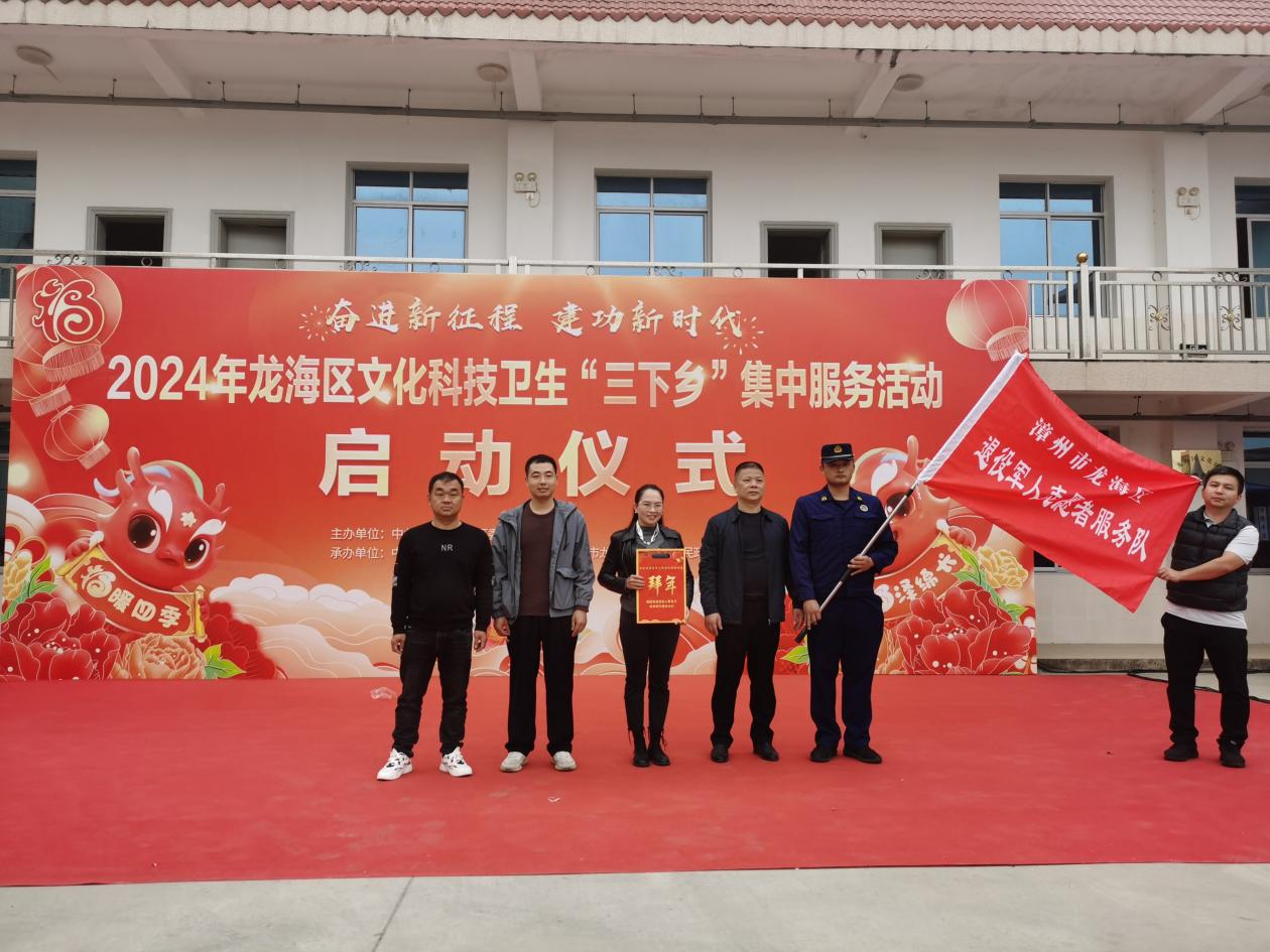 東泗鄉(xiāng)退役軍人志愿者服務(wù)隊(duì)與工作人員合影 “三下鄉(xiāng)”活動是關(guān)愛退役軍人的重要舉措,是實(shí)實(shí)在在為退役軍人和優(yōu)撫對象辦實(shí)事、辦好事的具體體現(xiàn)。龍海區(qū)退役軍人事務(wù)局積極組織退役軍人代表、東泗鄉(xiāng)退役軍人志愿者服務(wù)隊(duì),協(xié)同龍海農(nóng)商銀行東泗支行、國壽財(cái)險(xiǎn)共同參加活動。