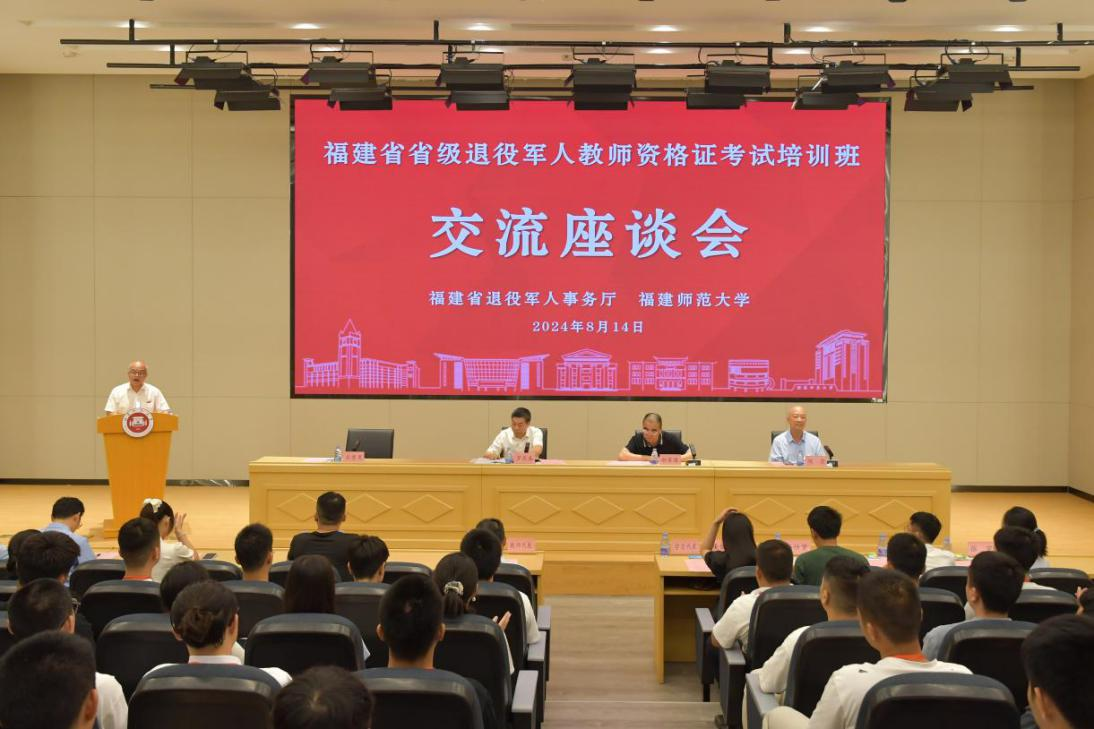 座談會上,羅慶春先以“面對面”宣講的方式,和大家一起認真學習了習近平總書記對退役軍人工作重要指示,黨的二十屆三中全會中關于教育工作和退役軍人工作的相關內容,以及全國退役軍人工作會議精神,勉勵大家心懷“國之大者”,不斷提高政治站位,始終聽黨話、跟黨走。 羅慶春指出,開辦省級退役軍人教師資格證考試培訓班,是貫徹落實習近平總書記“把退役軍人接收安置好、服務保障好、教育管理好、作用發(fā)揮好、權益維護好,讓軍人成為全社會尊崇的職業(yè)、讓退役軍人成為全社會尊重的人”指示的實際舉措,是推動更多的優(yōu)秀退役軍人到中小學任教的重要抓手,對于拓寬退役軍人就業(yè)路徑、優(yōu)化中小學教師隊伍結構都很有意義。各級對這個培訓班都十分重視,師大校領導高度重視,親自部署過問,精心制定培訓課程,遴選一流專家教授到班授課,廳機關指派專人全程跟班,省退役軍人關愛基金也給予了大力支持,去年首期培訓班取得了很好的成效和收獲。這一期在時間安排和課程制定上都做了更好的優(yōu)化,針對性更強。希望學員們珍惜機會,把握好余下的學習時間,瞄準9月份的教師資格考試,集中精力,排除干擾,真正學出成效;在老師指導下,善于吸取成功考證學員的學習經驗,總結出一套更加科學且適合自己的學習方法;奮力拼搏,不害怕困難,不放棄夢想,繼續(xù)保持發(fā)揚好人民軍隊好傳統(tǒng)好作風,敢拼善戰(zhàn),不辜負組織培養(yǎng),早日拿到教師資格證,早日成為光榮的人民教師;同時要樹立福建退役軍人良好形象,模范遵守國家法律法規(guī)和學校各項規(guī)章制度。 鄭家建對往屆成功考證和入職的學員表示了祝賀,他表示,自與省退役軍人事務廳簽訂戰(zhàn)略合作協(xié)議以來,雙方高度重視、通力協(xié)作,認真落實習近平總書記對教育工作和退役軍人工作作出的重要指示精神,全面實施退役軍人事務工作領域“精準服務工作法”。去年,雙方順利啟動第1期培訓班,取得了開門紅,本期課程整體開展順利,任課教師工作勤懇、認真授課,學員學習態(tài)度端正、積極性高,教學氛圍熱烈,教學組織有序,希望能夠有更大的成效。下一步,學校將努力將深入學習貫徹黨的二十屆三中全會精神與培訓工作緊密結合起來,落實好合作協(xié)議內容,助推全省退役軍人教育培訓工作高質量發(fā)展。 第1期學員、通過教師資格考試代表李美伽,推薦就業(yè)代表孫仕賢,新入職“兵教師”代表、南平市延平區(qū)新城實驗小學體育教師官俊華老師先后代表往屆學員作經驗交流發(fā)言,紛紛對培訓班的舉辦表示感謝,并分享了自己獨特的學習和考試經驗。第2期學員代表張宇、培訓班排長尤朝元先后代表在訓學員做表態(tài)發(fā)言,回憶了教師上課的點滴和奉獻,表示將不負眾望,認真培訓學習,爭取以更好的成績通過教師資格考試。教師代表、教育學院小學教育系副主任蔡旭群副教授發(fā)言,對學員提出殷切期望,表示將以更加飽滿的熱情投入教學,幫助學員提升學習效能。