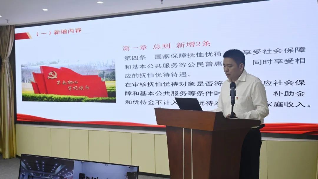 廳優(yōu)撫褒揚(yáng)處姚云宣講《烈士褒揚(yáng)條例》 據(jù)悉,省廳組織的三支青年干部服務(wù)小分隊(duì)近期將陸續(xù)前往全省各地基層一線開展宣講。 廳機(jī)關(guān)和省烈保中心干部職工在主會場,其他所屬單位干部職工在各分會場以視頻形式參加活動。 |