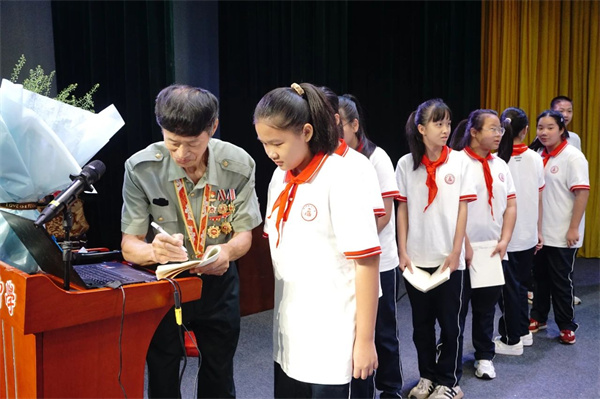 “戰(zhàn)斗英雄”在紅色課堂上為學(xué)生簽名寄語 “黨培養(yǎng)了我,戰(zhàn)火洗禮了我,我要把熱血和忠誠獻(xiàn)給黨。”中國人民解放軍一等功臣詹明德身著軍裝,胸前的勛章熠熠生輝,筆挺地站在新時代的講堂講述他的“烽火記憶”。 “生于華夏,永遠(yuǎn)相信‘中國紅’,安于盛世,時刻不負(fù)‘火焰藍(lán)’!”福建省最美退役軍人溫殿威講述了新時代消防員赴湯蹈火、視死如歸的英雄故事。 “作為一名黨員退役軍人,不管何時何地,只要群眾有危險,我都會毫不猶豫挺身而出?!钡谄邔萌珖赖履7短崦劇?008年北京奧運火炬手吳奕澈講述了自己“三跳救八命”見義勇為的感人故事。 …… 除了功臣模范、退役軍人,泉州市革命烈士陵園宣講團(tuán)隊還與講師團(tuán)、黨史部門、駐地高校、社會組織緊密合作,廣邀在校師生、專家學(xué)者、烈士親友、志愿者們走上紅色移動課堂的講臺,生動講述英烈故事、黨史故事、榜樣的故事,用人們喜聞樂見的形式讓紅色故事“聲”入人心,把紅色文化送進(jìn)尋常百姓家。 2024年以來,泉州市革命烈士陵園紅色移動課堂多措并舉,開展形式多樣的紅色文化“進(jìn)校園、進(jìn)軍營、進(jìn)機(jī)關(guān)、進(jìn)社區(qū)、進(jìn)企業(yè)”主題宣教活動,受到社會各界普遍關(guān)注和一致好評。這一特色宣教品牌,不僅被中共泉州市委黨史和地方志研究室發(fā)文通報表揚(yáng),還先后被退役軍人事務(wù)部、中華英烈網(wǎng)、中國退役軍人強(qiáng)國號、福建省退役軍人事務(wù)廳、東南早報等官方媒體宣傳推廣。 |