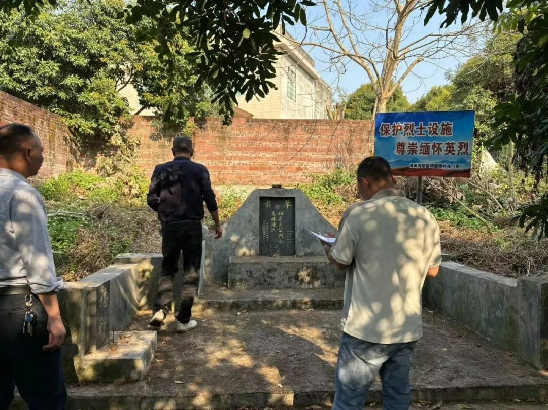 巡查組重點圍繞烈士紀(jì)念設(shè)施墓體穩(wěn)固性、碑刻文字清晰度、主體建筑保護完整性及環(huán)境衛(wèi)生潔凈度四項核心指標(biāo)展開系統(tǒng)核查。針對烈士紀(jì)念設(shè)施維護管理過程中存在的不足向各鄉(xiāng)鎮(zhèn)服務(wù)站提出了意見和建議,要求鄉(xiāng)鎮(zhèn)服務(wù)站有關(guān)負責(zé)人要高度重視烈士紀(jì)念設(shè)施的保護管理工作,強化日常巡查與專業(yè)養(yǎng)護,切實維護紀(jì)念場所的莊嚴(yán)肅穆環(huán)境。 高新區(qū) 近日,漳州市高新區(qū)退役軍人事務(wù)局聯(lián)合各鎮(zhèn)(辦)退役軍人服務(wù)站及志愿者團隊,對轄區(qū)內(nèi)零散烈士墓開展專項巡查行動。巡查組深入全區(qū)兩鎮(zhèn)一辦,對散葬烈士墓逐一實地走訪。工作人員通過“一墓一檔”的方式,詳細記錄烈士墓的地理位置、碑體保存狀況、周邊環(huán)境及管護責(zé)任落實情況。