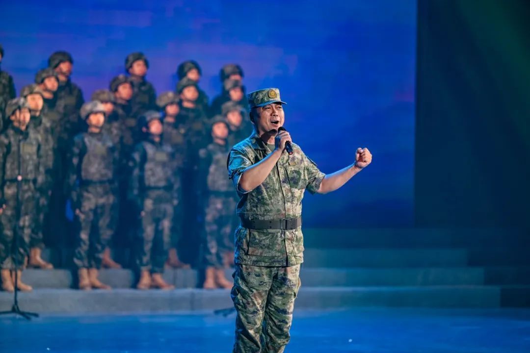 軍地合作的領(lǐng)唱合唱《軍民情》 間奏齊誦詩(shī)作《軍民情·七律》 唱出愛(ài)我人民愛(ài)我軍的 時(shí)代最強(qiáng)音