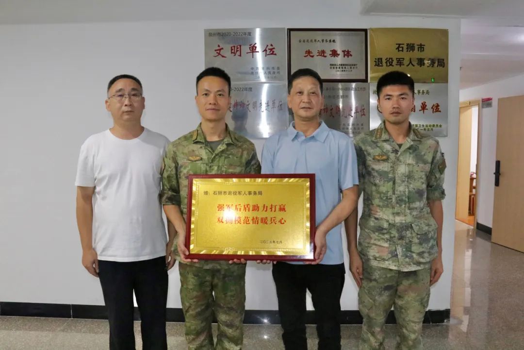 近日,來石駐訓部隊專程來到石獅市退役軍人事務局,將一塊印有“強軍后盾助力打贏,雙擁模范情暖兵心”的牌匾鄭重贈予該局工作人員。這塊沉甸甸的牌匾,飽含著駐訓部隊官兵對石獅市擁軍優(yōu)屬、服務保障工作的高度認可和誠摯謝意,生動詮釋了新時代軍民魚水深情。