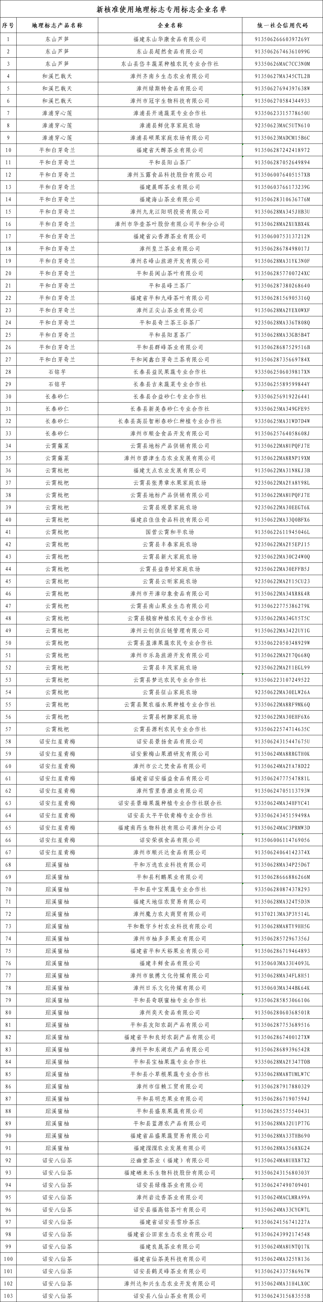 新核準使用地理標志專用標志企業(yè)名單