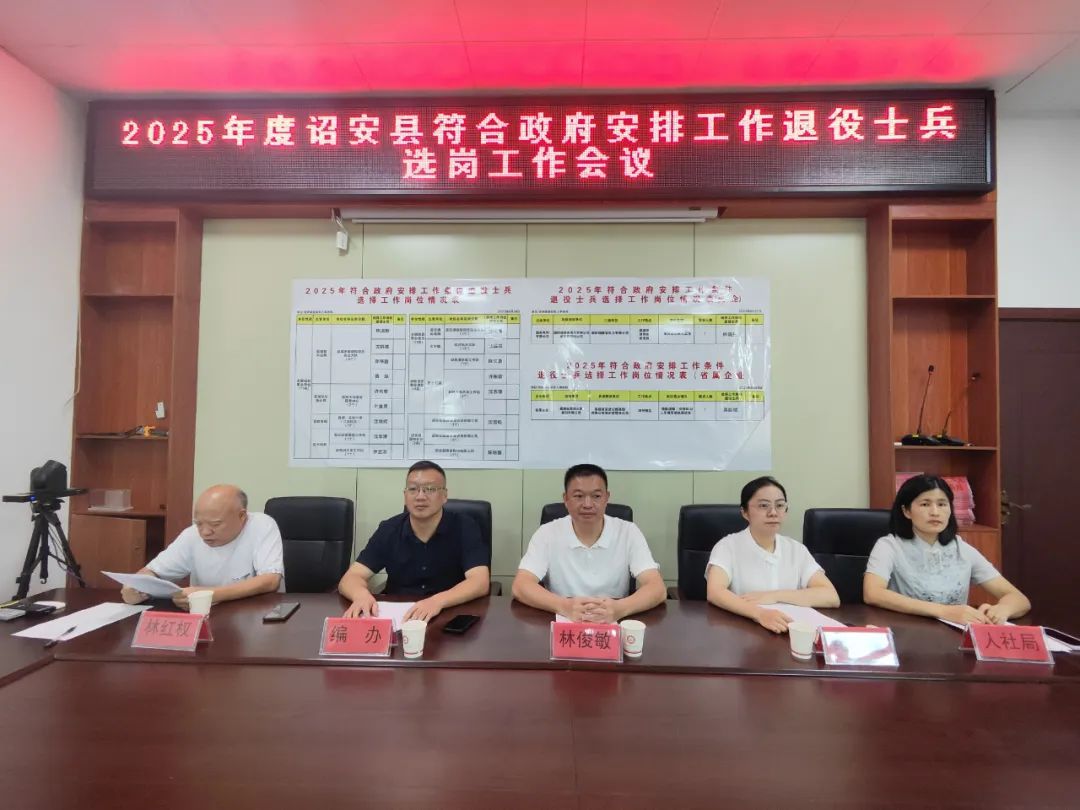 詔安縣 8月20日,漳州市詔安縣召開2025年度符合政府安排工作條件的退役士兵選崗工作會(huì)議,為18名轉(zhuǎn)業(yè)軍士提供11個(gè)全額撥款事業(yè)崗位、4個(gè)自收自支事業(yè)崗位以及5個(gè)國(guó)企崗位在內(nèi)的多元安置選擇。