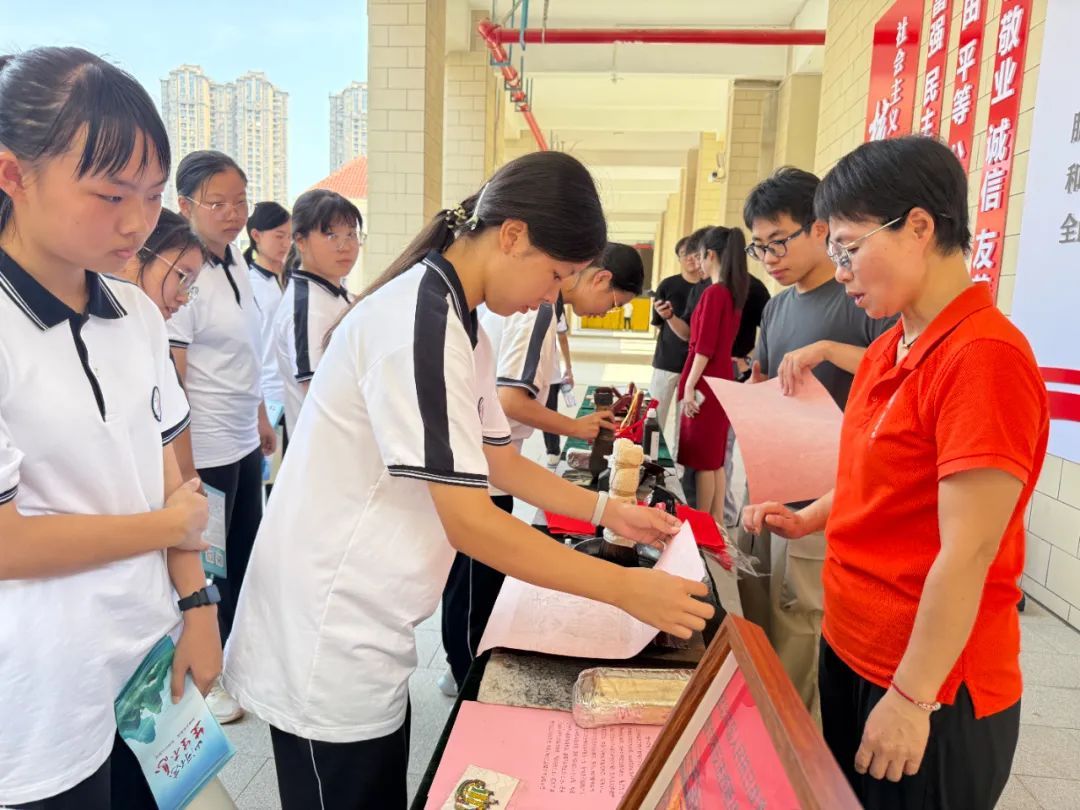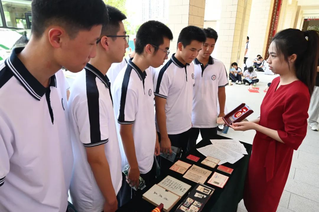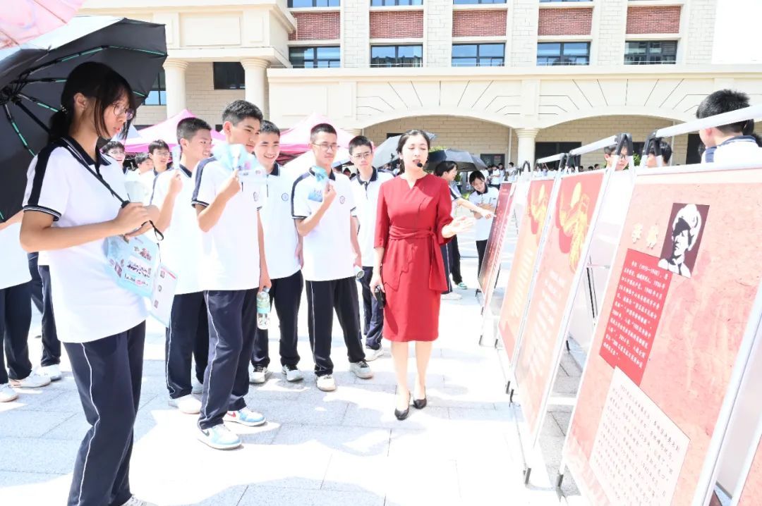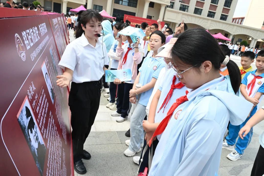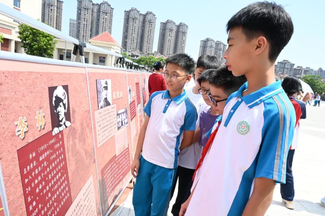 操場(chǎng)兩側(cè)排列著不同主題的展區(qū)與體驗(yàn)項(xiàng)目,學(xué)生們不再是坐在禮堂里被動(dòng)聽講,而是走進(jìn)一個(gè)個(gè)情境之中,成為歷史的親歷者、感受者和發(fā)問者。 不遠(yuǎn)處的抗戰(zhàn)英烈事跡展區(qū),十塊圖文展板靜靜矗立,呈現(xiàn)全國(guó)及漳州本地抗戰(zhàn)英烈的感人故事。展板前,漳州市烈士紀(jì)念設(shè)施保護(hù)中心的講解員動(dòng)情講述,學(xué)生們凝神傾聽,一本本英烈事跡宣傳冊(cè)在他們手中傳遞。年輕的面孔與黑白照片中的英雄,仿佛在這一刻跨越時(shí)空相遇。