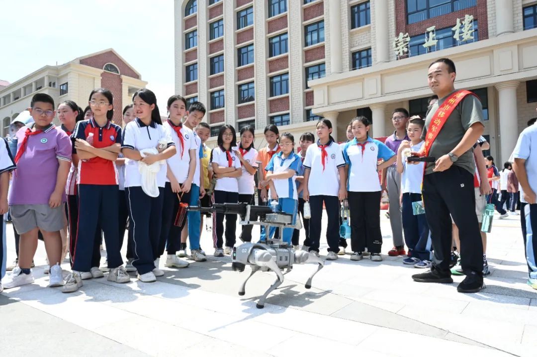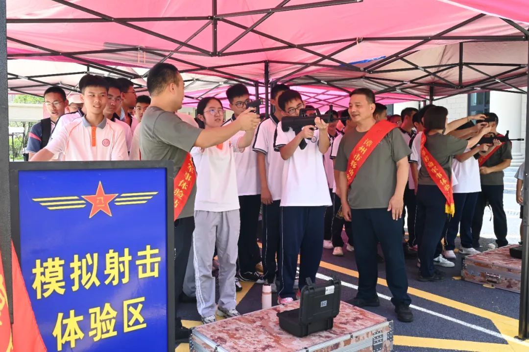 突然,“砰——”的一聲巨響回蕩在空中,瞬間點(diǎn)燃全場(chǎng)氣氛。烈日炎炎,卻絲毫阻擋不了大家的熱情。在軍事體驗(yàn)區(qū),男女學(xué)生們躍躍欲試,輪流肩扛模擬火箭筒進(jìn)行發(fā)射體驗(yàn)。緊接著,伴隨一陣“嗒嗒嗒”的模擬槍聲,一只機(jī)器狗穩(wěn)健地走入人群,靈活演示多種戰(zhàn)術(shù)動(dòng)作,立刻成為全場(chǎng)焦點(diǎn)。同學(xué)們紛紛好奇地圍上前去,伸手觸摸機(jī)器狗的“手”和“腳”,感受科技賦能國(guó)防的獨(dú)特魅力。 “我剛才模擬了中國(guó)軍人打槍的環(huán)境,我拿了95式步槍,我覺得它很重,我體會(huì)到了軍人的艱辛與不易。作為一名新時(shí)代青少年,我應(yīng)該認(rèn)真學(xué)習(xí),扛起新時(shí)代國(guó)家的重任?!备咭恍聦W(xué)黃靖航感慨道。