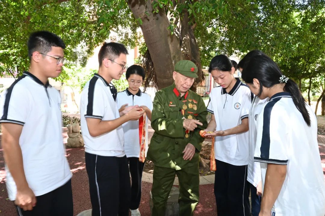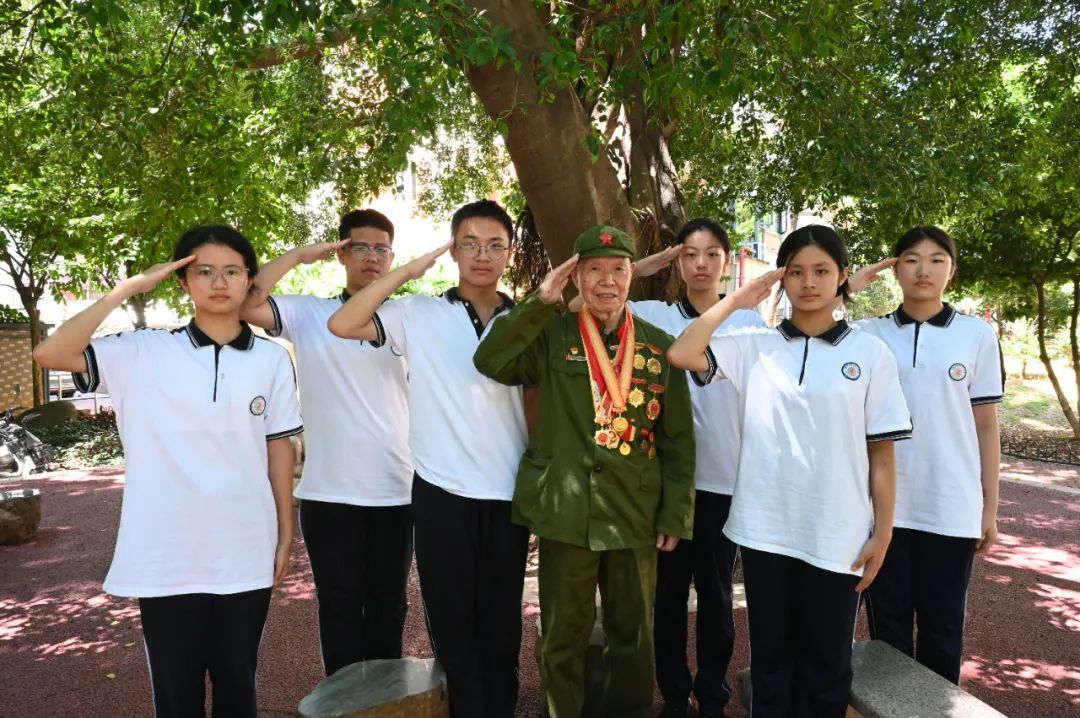 臨別時(shí),老人緊緊握住他們的手,反復(fù)叮囑:“你們要珍惜現(xiàn)在的好時(shí)光,好好學(xué)習(xí),將來(lái)成為國(guó)家的棟梁!”榕樹下,學(xué)生與老兵用軍禮向革命前輩們致敬。 這場(chǎng)相隔八十年的對(duì)話,不僅是記憶的傳遞,更是一次精神的交接。年輕的目光與滄桑的眼神在此相遇,他們彼此致意,也彼此照亮。