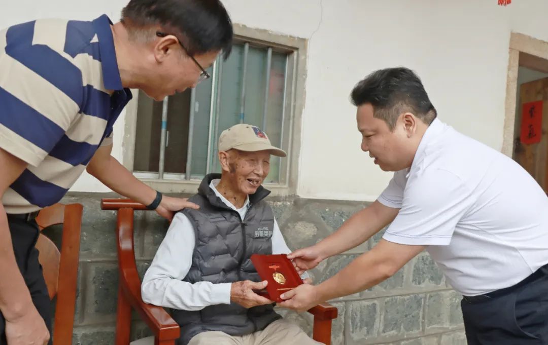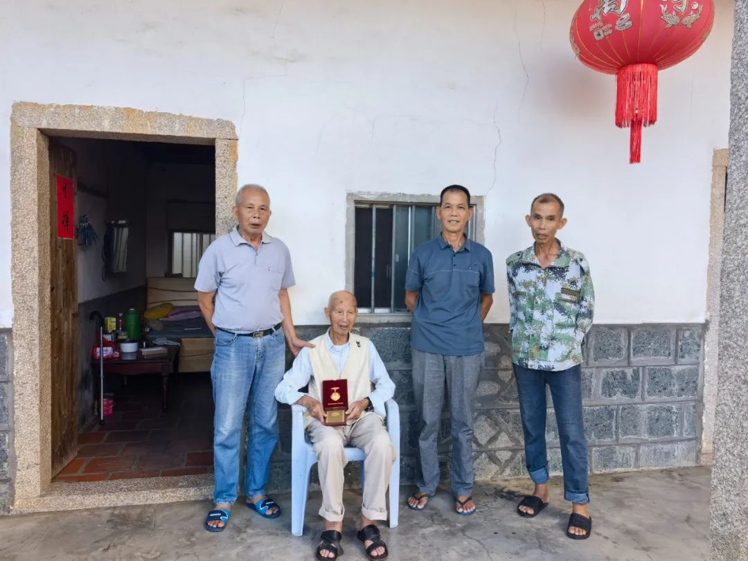 1945年,蔡友琳隨軍參加閩東追擊戰(zhàn),一心盼著戰(zhàn)爭(zhēng)早日結(jié)束??箲?zhàn)勝利的消息傳來(lái),整個(gè)駐地歡騰一片,“大家都希望可以過(guò)太平日子了”。部隊(duì)改編后,蔡友琳選擇離開軍隊(duì),在廈門短暫工作。1949年,思鄉(xiāng)心切的蔡友琳步行回到長(zhǎng)泰老家務(wù)農(nóng),終于迎來(lái)安穩(wěn)的生活?!拔揖鸵宦纷呋丶遥亲訉?shí)在餓得不行,就向沿途的人家討點(diǎn)吃的?!边@條返鄉(xiāng)路,他走得艱難,卻滿懷希望。 回鄉(xiāng)后,蔡友琳結(jié)婚生子,子女孝順,家庭和睦。如今老人身體尚可,只是聽力有些下降。自2015年5月起,蔡友琳開始接受公益基金助養(yǎng)金資助。社會(huì)的關(guān)懷如涓涓細(xì)流,溫暖著這位曾為國(guó)家奮戰(zhàn)的老兵。2015年,蔡友琳獲頒“中國(guó)人民抗日戰(zhàn)爭(zhēng)勝利70周年”紀(jì)念章;十年后,又一枚紀(jì)念章承載著時(shí)代的敬意,佩戴在他的胸前。 “戰(zhàn)爭(zhēng)是極其殘酷的,和平就是最大的幸福。”這是蔡友琳常掛在嘴邊的話,也是他一生最深刻的領(lǐng)悟。 從戰(zhàn)火紛飛到安居樂(lè)業(yè),從硝煙彌漫到村莊寧?kù)o,他的人生猶如一部行走的歷史書,見證著一個(gè)國(guó)家從苦難走向復(fù)興的偉大歷程。長(zhǎng)泰區(qū)、鎮(zhèn)領(lǐng)導(dǎo)時(shí)常前來(lái)探望,關(guān)心他的身體和生活,聆聽他講述抗戰(zhàn)往事。“抗戰(zhàn)老兵是民族的脊梁,是歷史的見證者,”長(zhǎng)泰區(qū)領(lǐng)導(dǎo)表示,“他們的英勇事跡和愛國(guó)精神值得永遠(yuǎn)銘記與傳承。我們將繼續(xù)做好參戰(zhàn)老兵的關(guān)懷工作,嚴(yán)格落實(shí)優(yōu)撫政策,讓英雄安享晚年?!?/p>