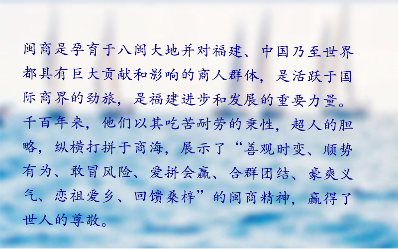 “出則兼濟(jì)天下,歸則回報(bào)桑梓。一直是我們閩商不滅的熾熱情懷,作為閩商的一員,很榮幸也很自豪,榮幸能夠參與到新福建的建設(shè)中來,自豪能夠成為新時(shí)期新福建建設(shè)的見證者?!?span>[詳細(xì)]