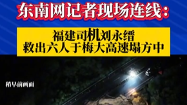 塌方發(fā)生后,龍巖市永定區(qū)鳳城街道大園社區(qū)居民劉永縉剛好經(jīng)過事發(fā)地,在救援人員趕到現(xiàn)場前,他第一時間下車救援,共救出6人。[詳細(xì)]
