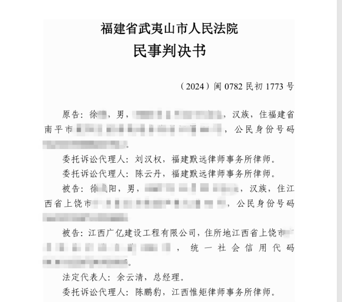 徐先生帶隊完成了烤煙房擋墻項目施工。(受訪者供圖) 多方回應揭隱情 施工項目系違法轉包 5月27日,記者來到武夷新區(qū)了解情況。 項目業(yè)主代表南平市武夷新區(qū)興田組團經四路道路工程項目負責人鄭主任告訴記者,2021年由于橋梁施工導致武夷山市興田鎮(zhèn)黃土村的河道水流發(fā)生改變,對河岸邊的烤煙房的安全構成威脅,當地村民對此反映強烈。因此,業(yè)主單位要求項目總包中水三局武夷新區(qū)興田組團經四路道路工程項目經理部對河岸進行搶險施工。該項目屬于合同外項目,但因涉及到群眾的生產生活,業(yè)主單位認可該項目的實施。中水三局在申請工程進度款時,已將該項目納入工程清單報表進行申報,在施工結束后,該項目通過竣工驗收。業(yè)主單位按照流程審批,于2022年1月將含有擋墻施工這項的工程進度款支付給中水三局,中水三局也確認收到了進度款。 隨后,記者電話采訪了中水三局武夷新區(qū)興田組團經四路道路工程項目經理部負責人閆經理。閆經理在電話中表示,徐先生的問題應該和第三人徐某陽去解決,這是他們之間的個人糾紛。 記者從一份2025年1月生效的武夷山市人民法院民事判決書中了解到,中水三局向南平市武夷新區(qū)建設發(fā)展有限公司承包武新區(qū)興田組團經四路道路工程后,將工程分包給廣億公司和江西億愷公司。徐某陽作為廣億公司的代表與中水三局簽訂了承包合同,再將案涉工程分包給他的堂弟徐先生。徐先生自2016年起配合其堂兄徐某陽在南平市武夷新區(qū)興田組團經四道路工程的部分工程施工,負責現場管理、購買材料等事務。2021年5月,二人口 經武夷山市法院審理認定,徐先生與徐某陽系無施工資質的自然人,案涉工程系違法分包、轉包,所涉工程款由徐某陽支付。